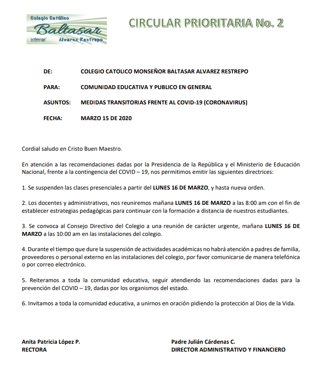 Esta información se comparte con toda la comunidad educativa.