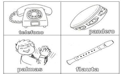 - Colorea con rojo los objetos que a tu parecer generan sonidos largos y con azul los que generan sonidos cortos.
