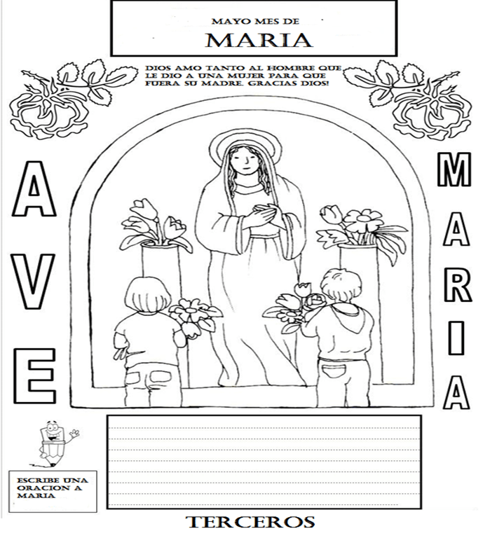 ACTIVIDAD DEL DÍA: Si puedes, imprime la hoja, si no es posible realiza TU el dibujo en una hoja o directamente en el cuaderno y escribe la oración que quieras a la virgen maría (ENVIAR EVIDENCIA)