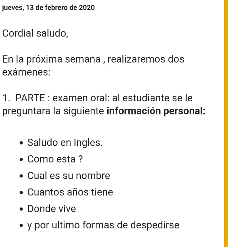 El examen de español de comprensión hoy se entregó pero la mayoría sacó nota baja, así que se hizo una actividad de recuperación. Nuevamente me quedé con ellos.